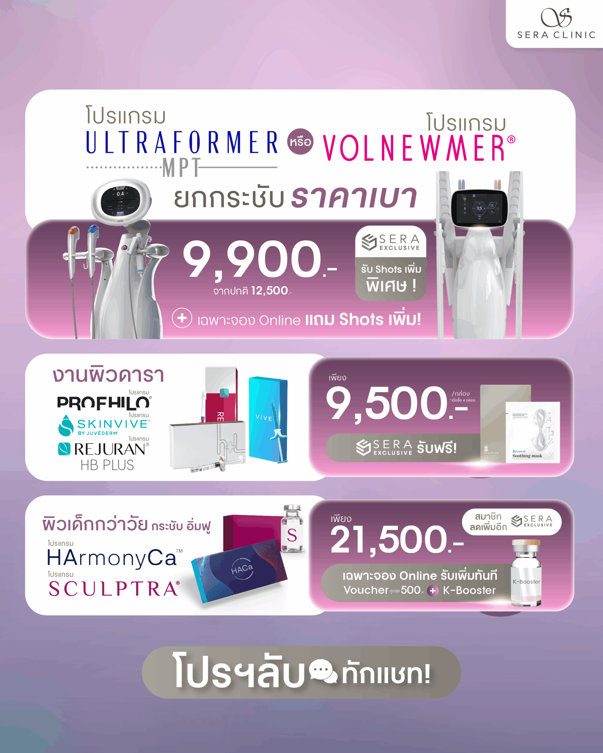 First Class Skinเกิดมาเพื่อโดดเด่น ก็ต้องผิว First Class Skinผิวดี ผิวเบอร์หนึ่ง แบบไม่ง้อฟิลเตอร์จัดโปรเดียวรวมทุกนวัตกรรมความงาม “ตัวท็อป” ครบจบยกระดับลุคให้ปัง ปลดล็อกออร่าที่ซ่อนอยู่ให้ผิวเปล่งประกายแบบตัวเอก จอง Online ได้โปรฯลับรวมแบรนด์ดัง รุ่นใหม่ก่อนใคร ที่ Sera Clinicโปรโมชั่นตั้งแต่วันนี้ - 31 มีนาคม 2569 ┏━━━━━━━━━━━━━━━┓ จ่ายด้วย Sera Wallet จ่ายน้อย แต่ได้มากกว่า ดับเบิ้ลความคุ้ม Join Us! SERA EXCLUSIVE ได้มากกว่าใครในทุกดีล ผ่อน 0% ไม่ต้องใช้บัตร เก็บสิทธิ์ได้ ไม่หมดอายุ ┗━━━━━━━━━━━━━━┛ โปรโมชั่นเฉพาะจอง Online พร้อมสวยแล้ววันนี้ ที่ Sera Clinic ทั้ง 9 ...อ่านเพิ่มเติม